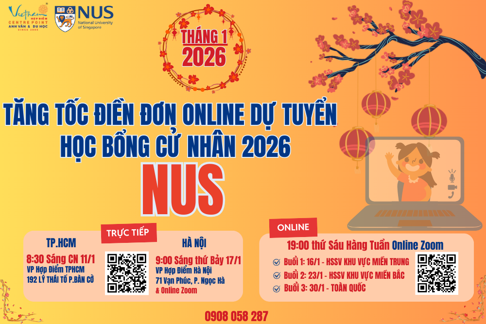 Nhằm hỗ trợ ứng viên hoàn tất điền đơn online NUS ngay trong tháng 1/2026, Hợp Điểm sẽ tổ chức nhiều cuộc hướng dẫn điền đơn & giải đáp hồ sơ dự tuyển NUS